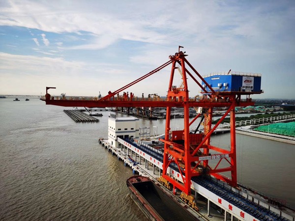 由杭州華新機(jī)電工程有限公司總包的一臺設(shè)計生產(chǎn)率為750t/h的螺旋卸船機(jī)總裝完成進(jìn)入調(diào)試階段。該設(shè)備用于國家能源集團(tuán)宿遷發(fā)電有限公司二期擴(kuò)建2×660MW超超臨界二次再熱機(jī)組工程。本工程位于宿遷市南偏東距市中心18km處的京杭大運河南,二期新建碼頭共有4個泊位,配置兩臺螺旋式卸船機(jī)、兩臺16t清艙用港口門座機(jī)。